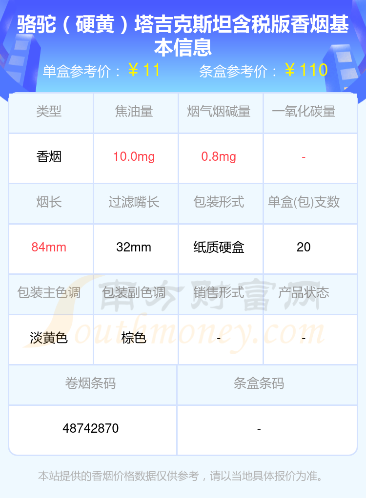 4、骆驼(硬黄)塔吉克斯坦含税版