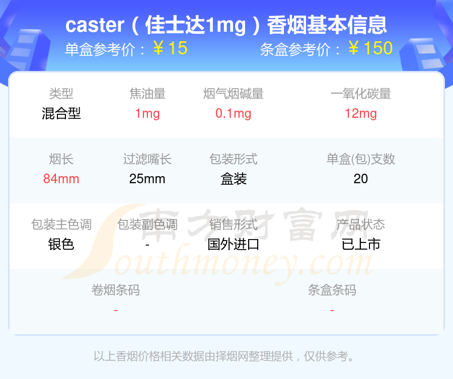 以上香烟价格相关数据由择烟网整理提供,仅供参考。