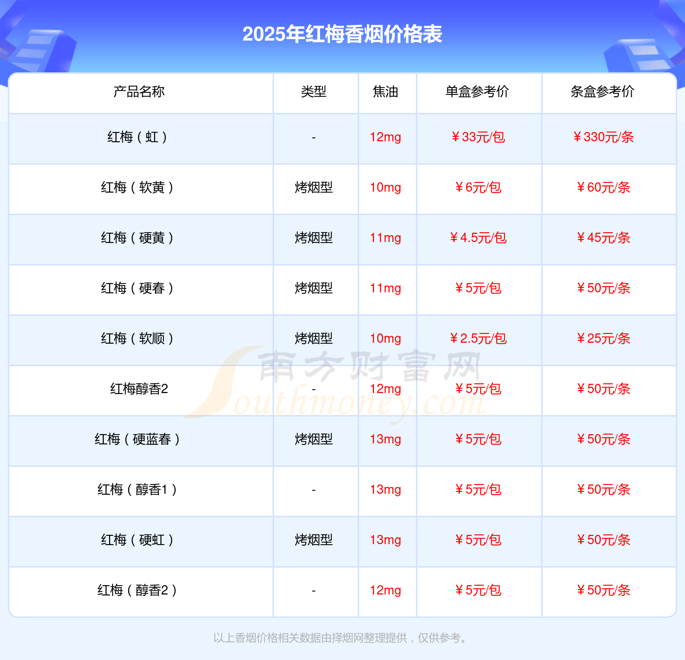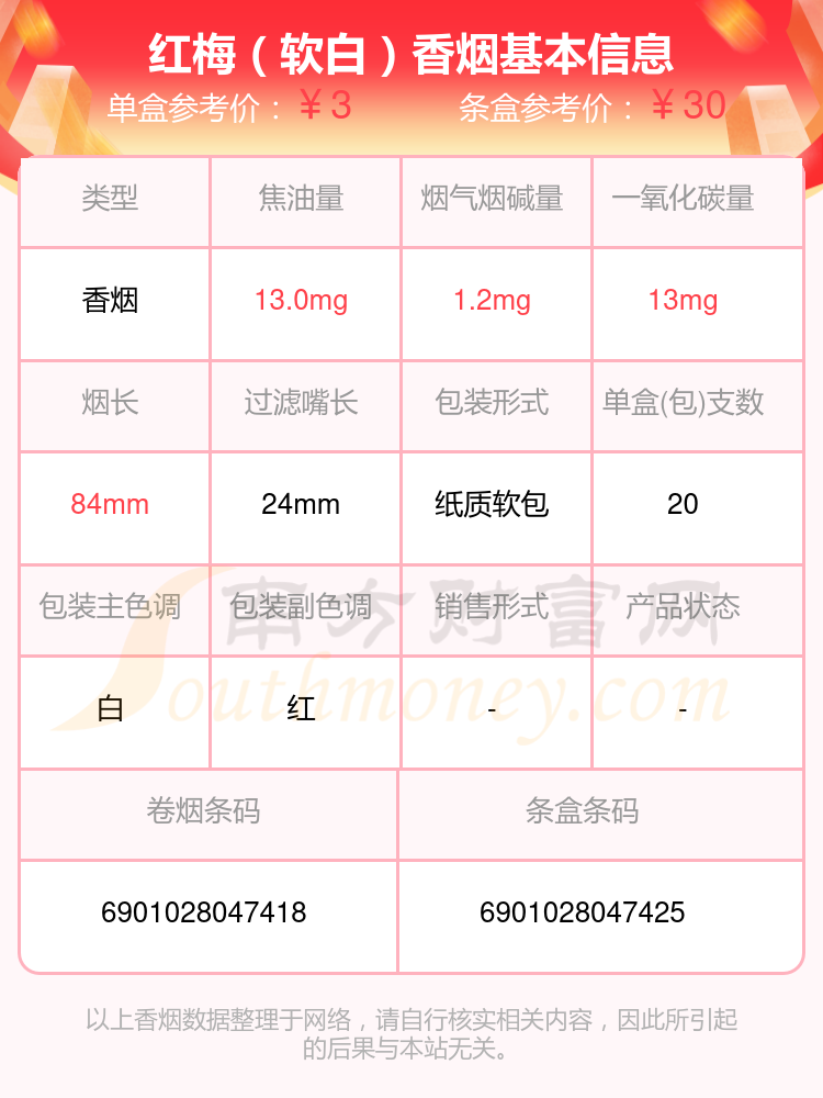 红梅(软白)条盒参考价:30元