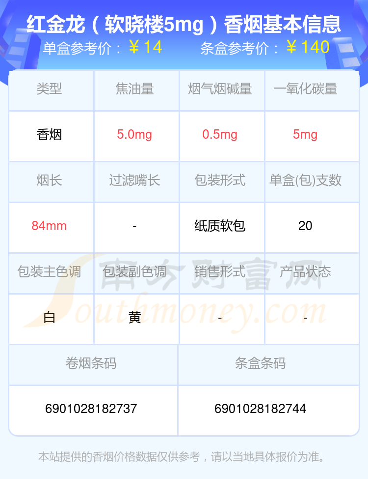 红金龙(软晓楼5mg)单盒参考价:14元