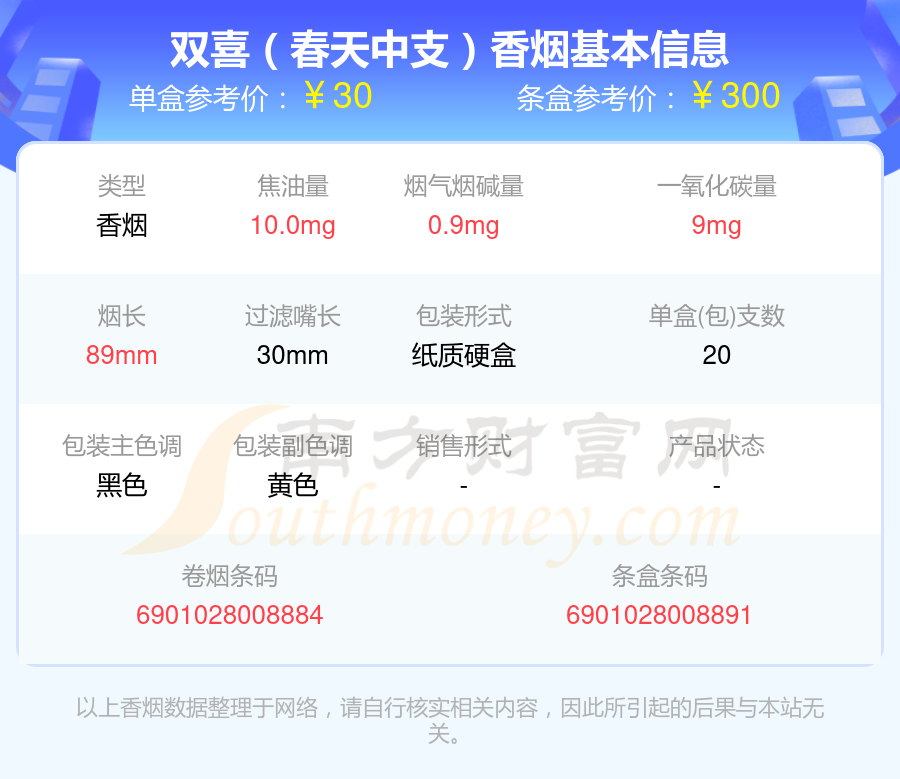 以上香烟数据整理于网络,请自行核实相关内容,因此所引起的后果与本站无关。