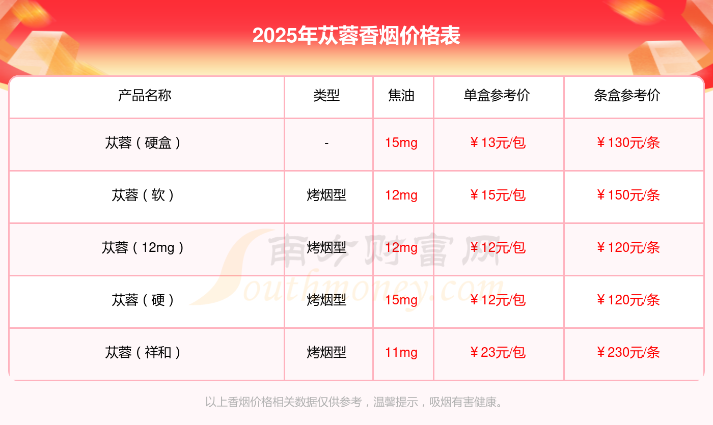 以上香烟数据整理于网络,请自行核实相关内容,因此所引起的后果与本站无关。
