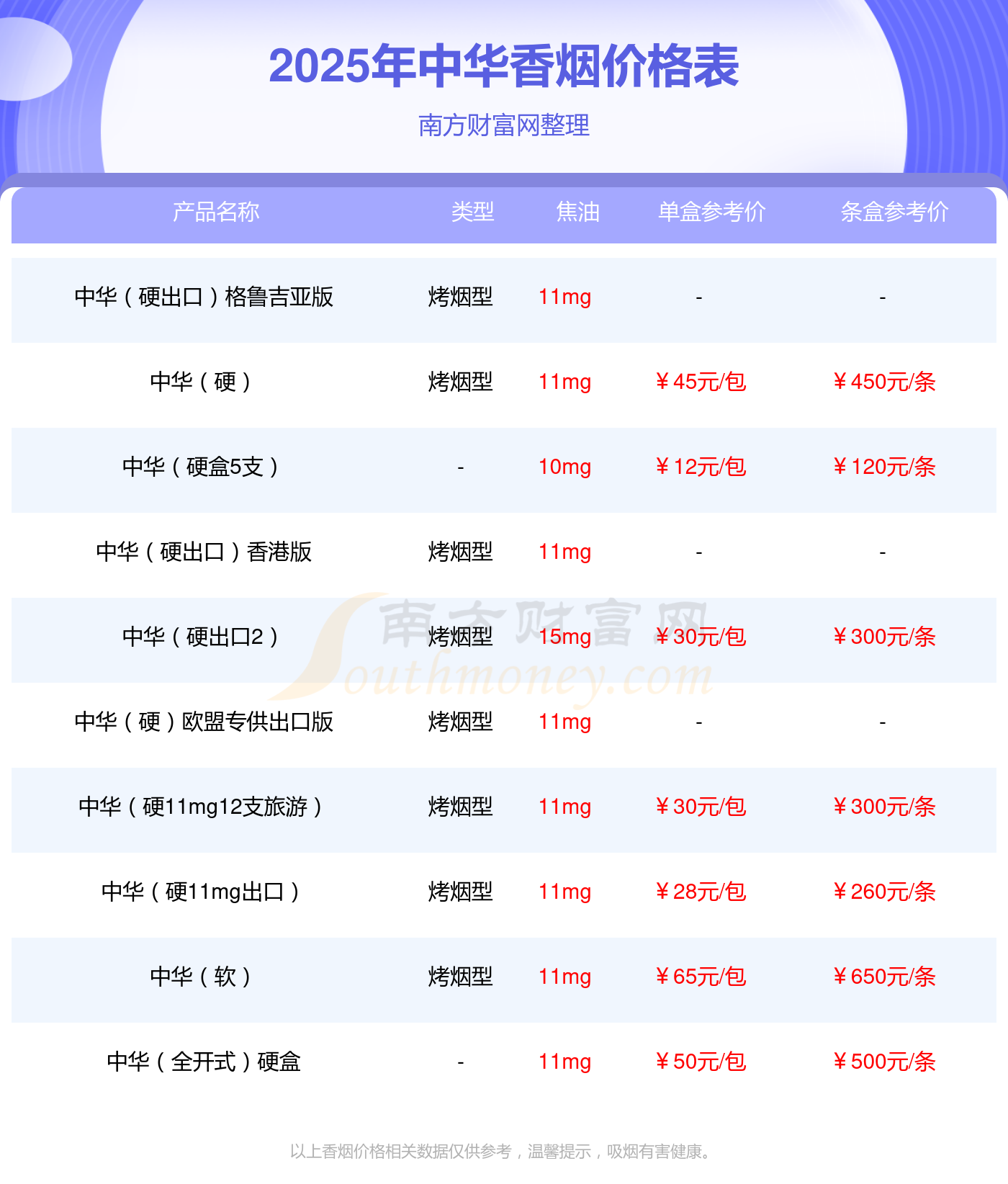 中华卷烟诞生于1951年。至今,中华已逐步形成了软包中华、硬盒中华、全开式中华、10mg中华、中华5000等多种规格包装,口味风格各具特色的系列产品,成为中式高档烤烟,被誉为“国烟”。中华烟先后荣获各种大奖,牢牢占据着国内高档卷烟的市场份额。