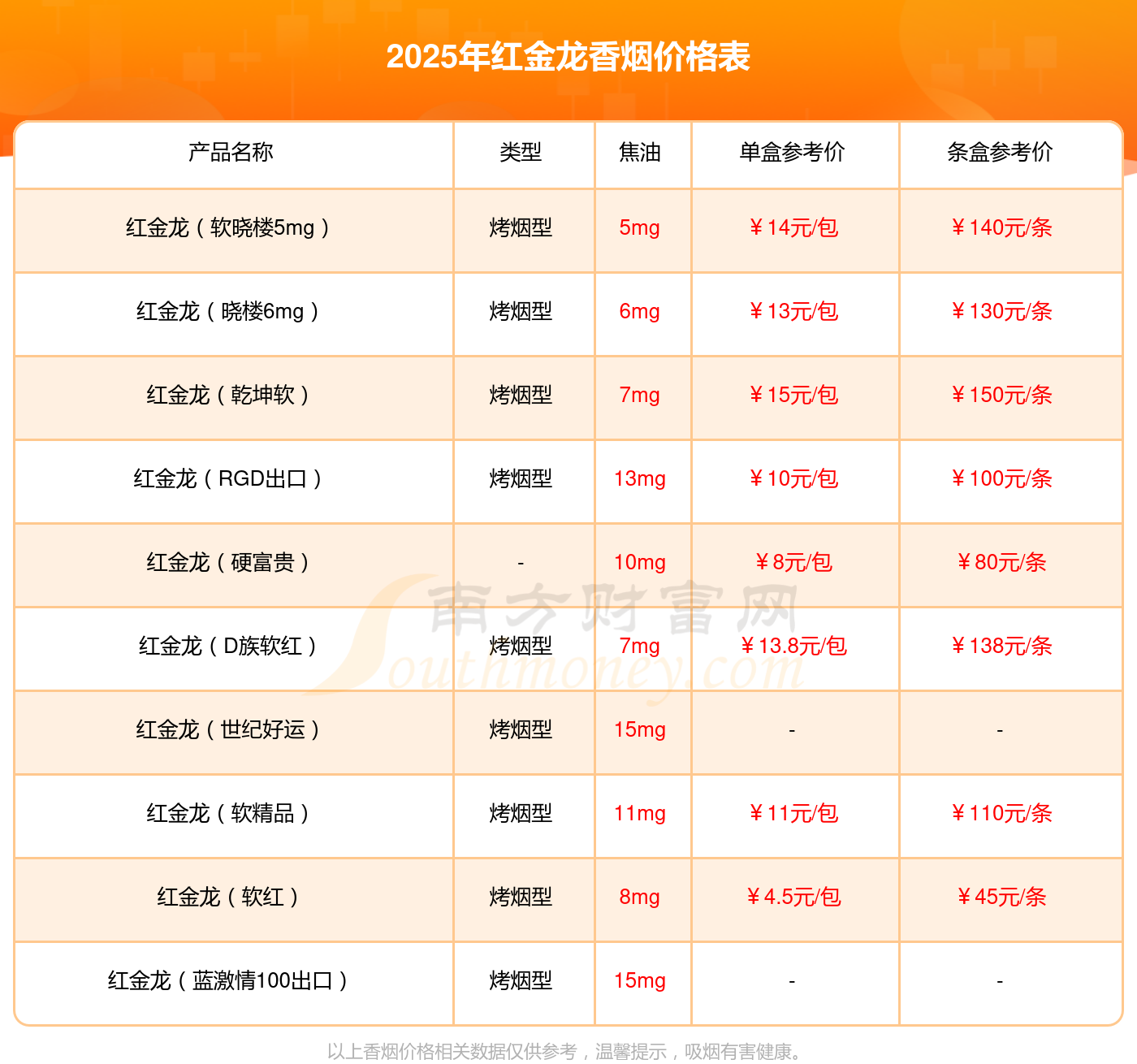 1916年,南洋兄弟烟草公司汉口分公司成立。也就是在这个时候,南洋公司推出“红金龙”品牌,希望它能为公司的发展注入新的动力。二十世纪20年代,红金龙畅销中国。1968年,缔造“红金龙”的“南洋烟厂”正式更名为“武汉卷烟厂”。2004年,“红金龙”覆盖了全国除新疆以外的所有省份。2007年“红金龙”产量过200万箱,成为全国3个过200万箱的品牌之一。