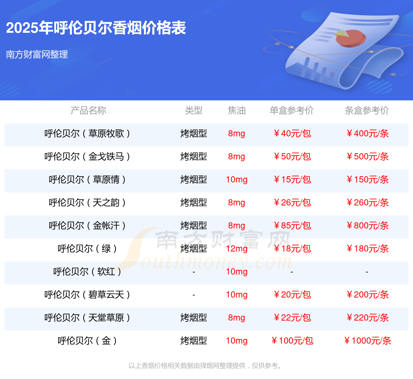 “呼伦贝尔”创牌于2008年,作为乌兰浩特卷烟厂生产的顶尖品牌,“呼伦贝尔”系列产品精选来自国内云南和国外津巴布韦等地生产的上等烟叶,用先进的卷烟加工工艺精心制造而成。“呼伦贝尔”主要发展方向为高档及高价位价区。