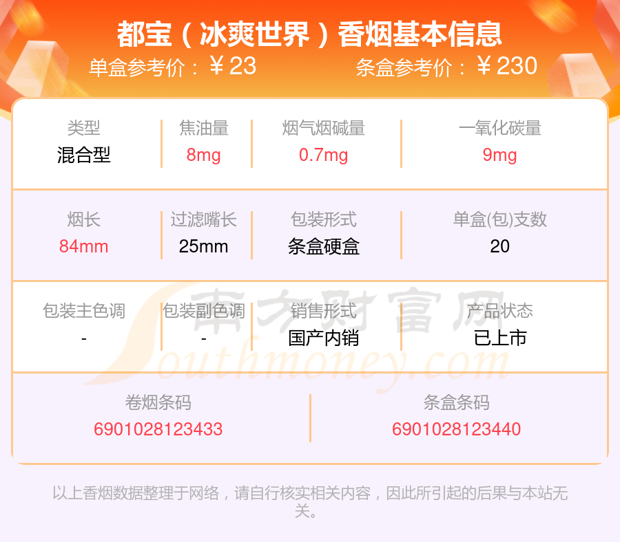 都宝(冰爽世界)条盒参考价:230元