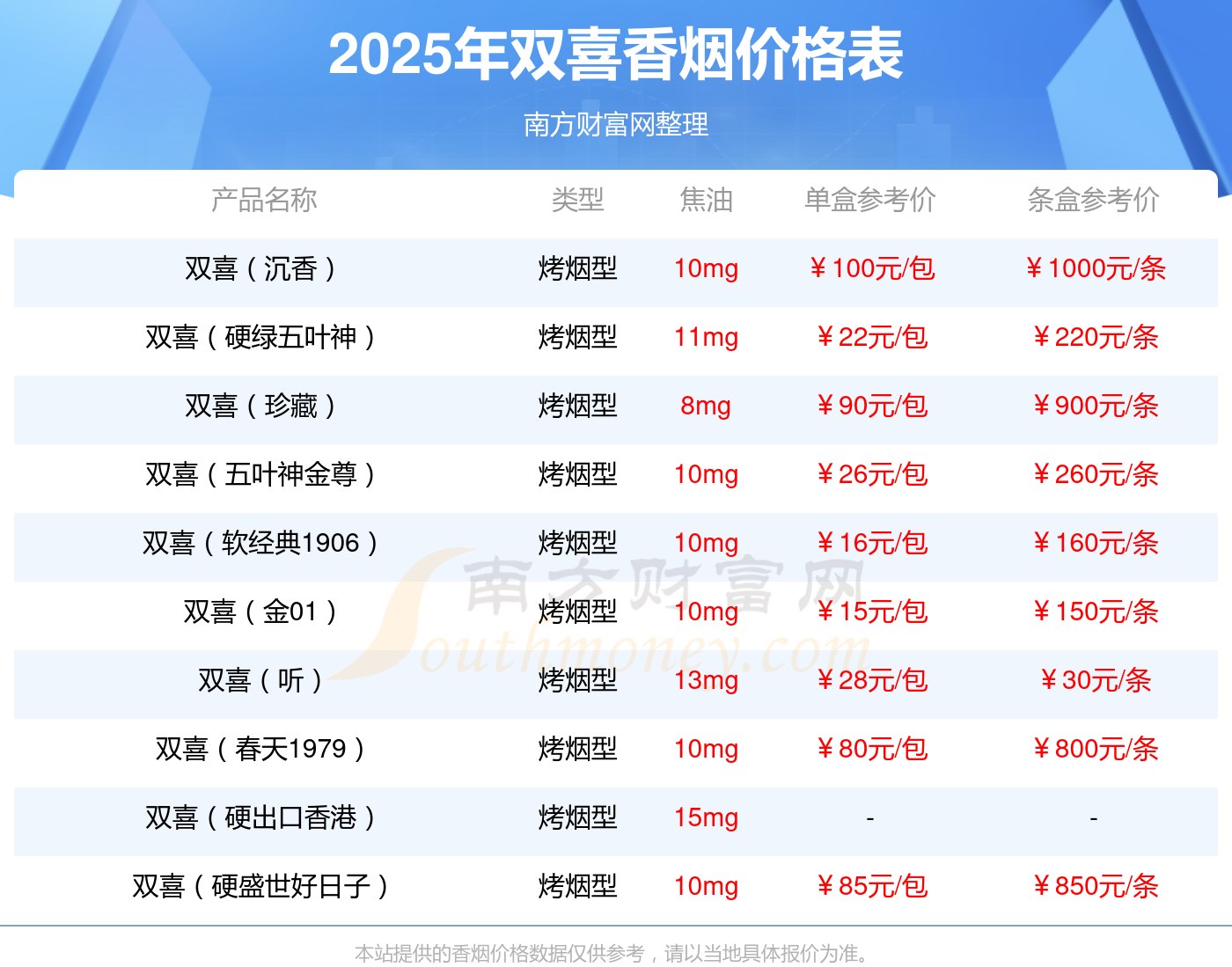 以上香烟价格相关数据由择烟网整理提供,仅供参考。