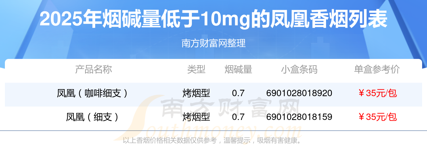 2025年烟碱量低于10mg的凤凰香烟盘点