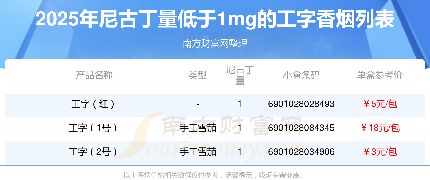 尼古丁量低于1mg的工字香烟有哪些?择烟网为大家整理盘点,分别有: