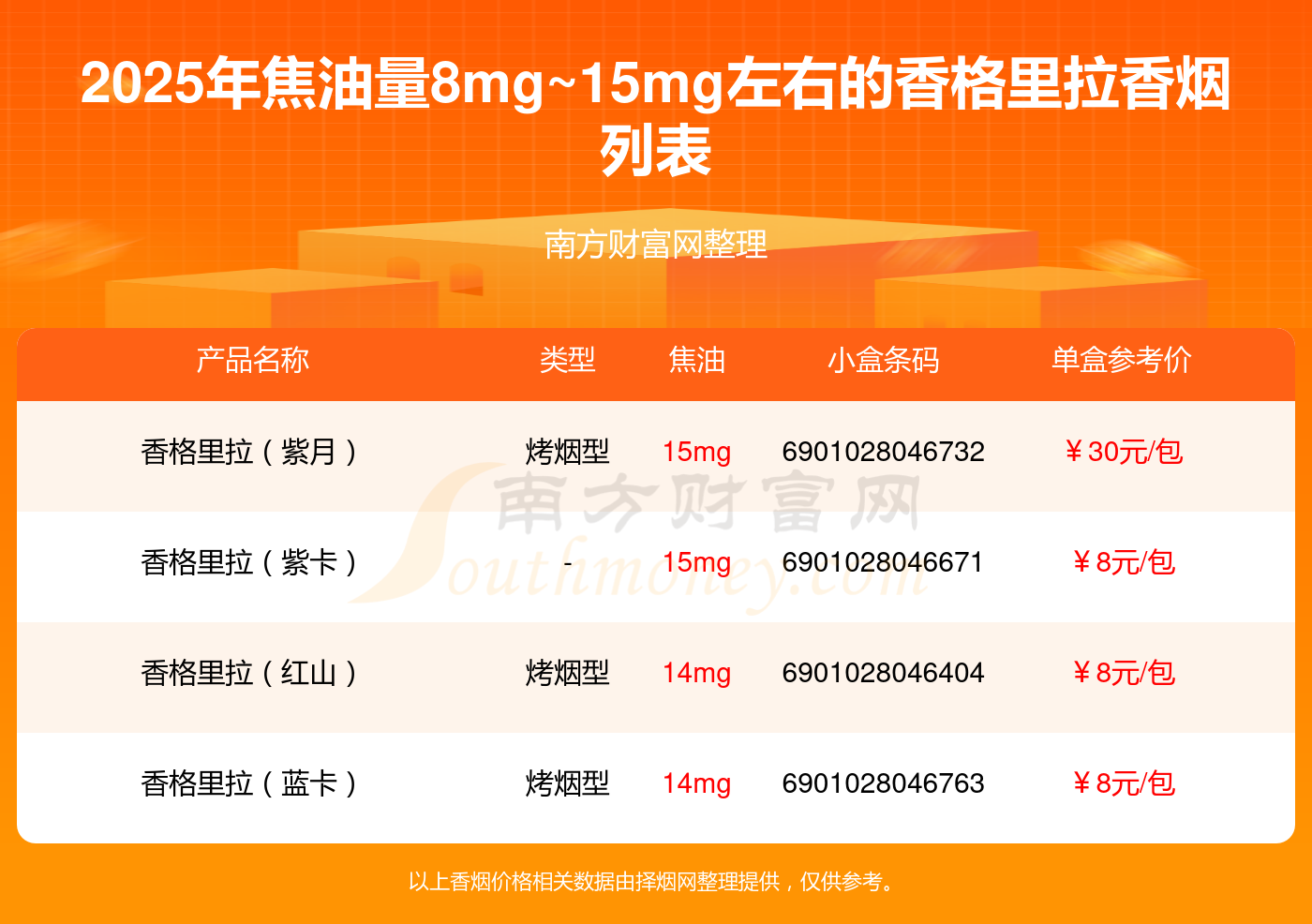 以上香烟价格相关数据由择烟网整理提供,仅供参考。