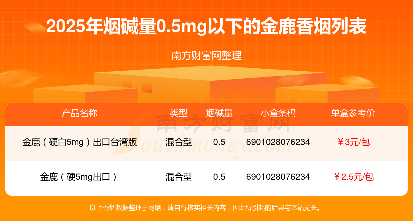 烟碱量0.5mg以下的金鹿香烟有哪些?择烟网为大家整理盘点,分别有: