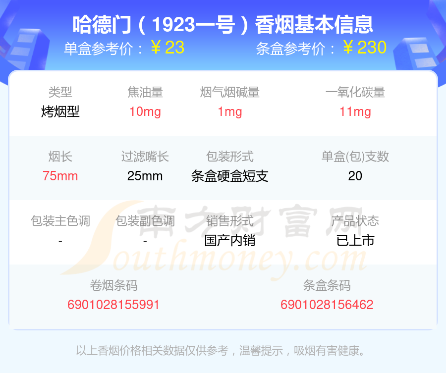 焦油量8mg~15mg的哈德门香烟有哪些?择烟网为大家整理盘点,分别有:哈德门(芬芳)、哈德门(清香)、哈德门(王府)、哈德门(纯香)、哈德门(软)、哈德门(精品)、哈德门(1923一号)、哈德门(1923壹号)、泰山(哈德门壹号)、哈德门(壹号)等,具体价格如下: