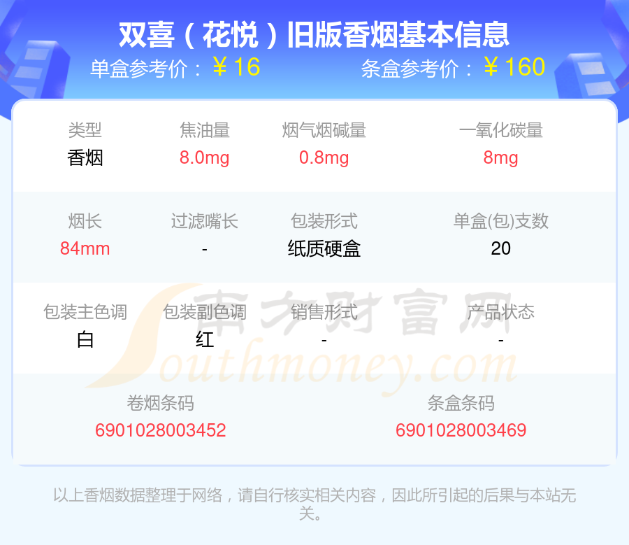 以上香烟数据整理于网络,请自行核实相关内容,因此所引起的后果与本站无关。