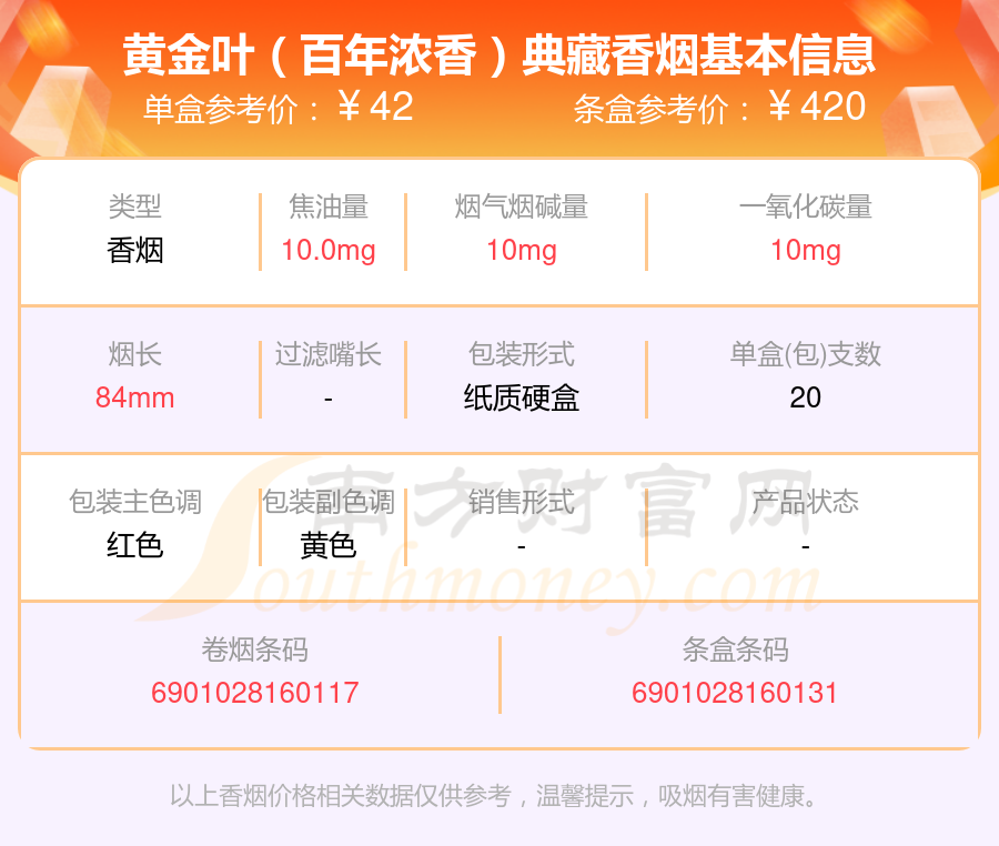 黄金叶(软洛阳牡丹)参考价18.0元/包、黄金叶(百年浓香)典藏参考价42.0元/包等。