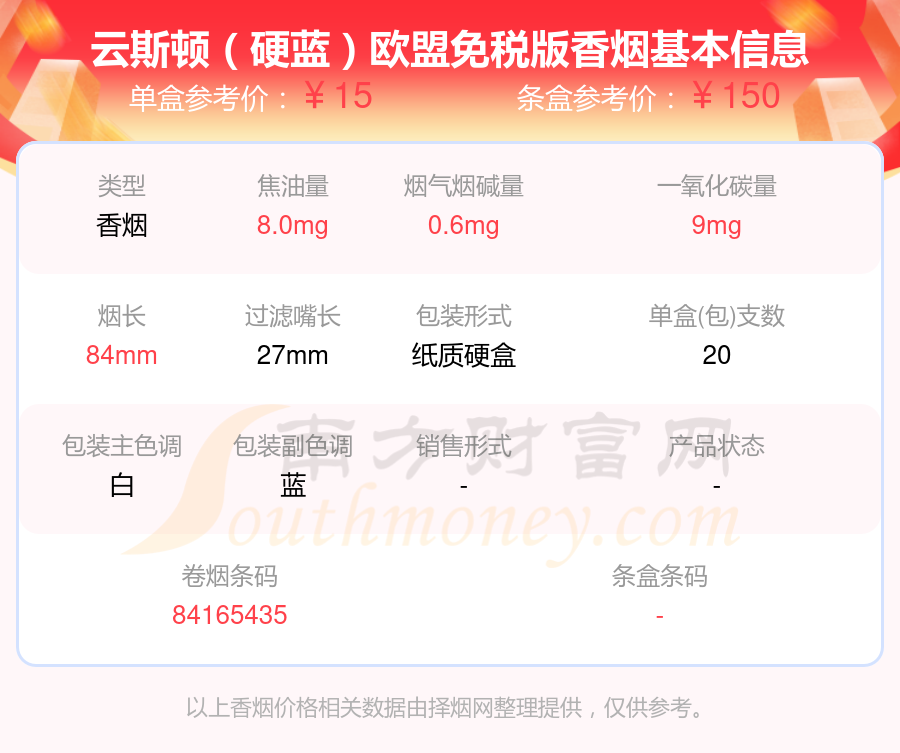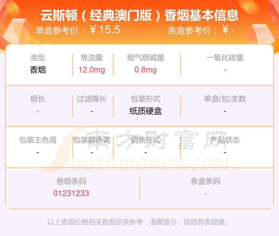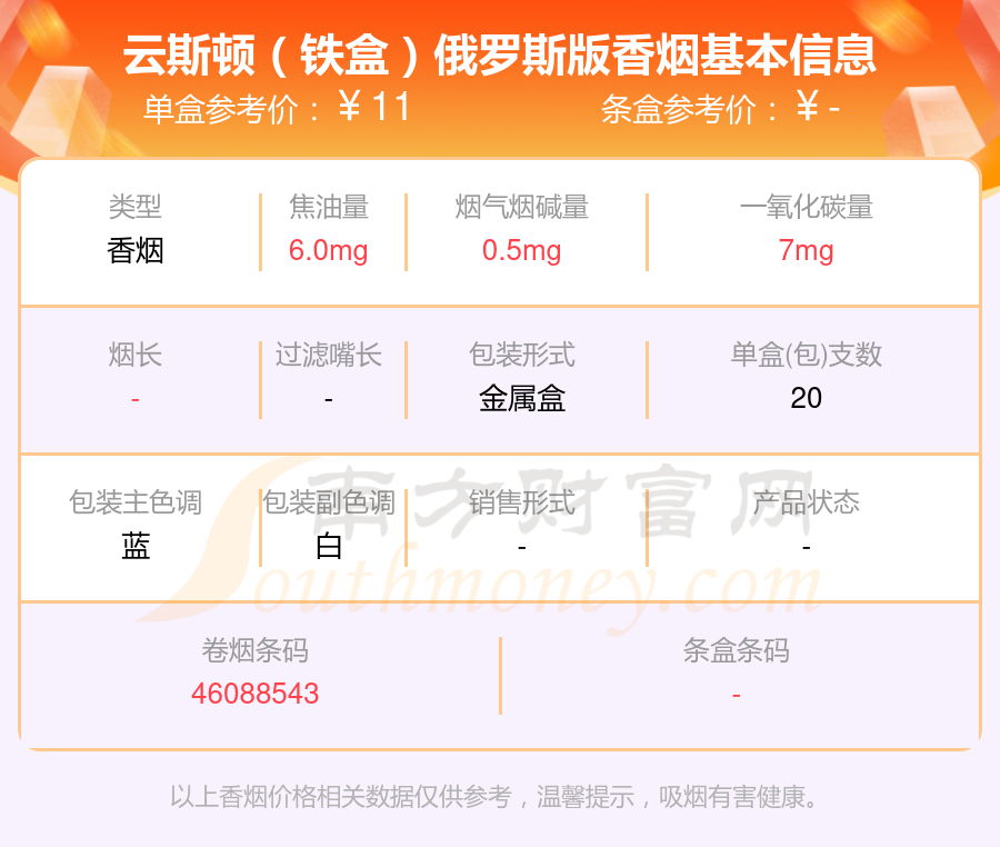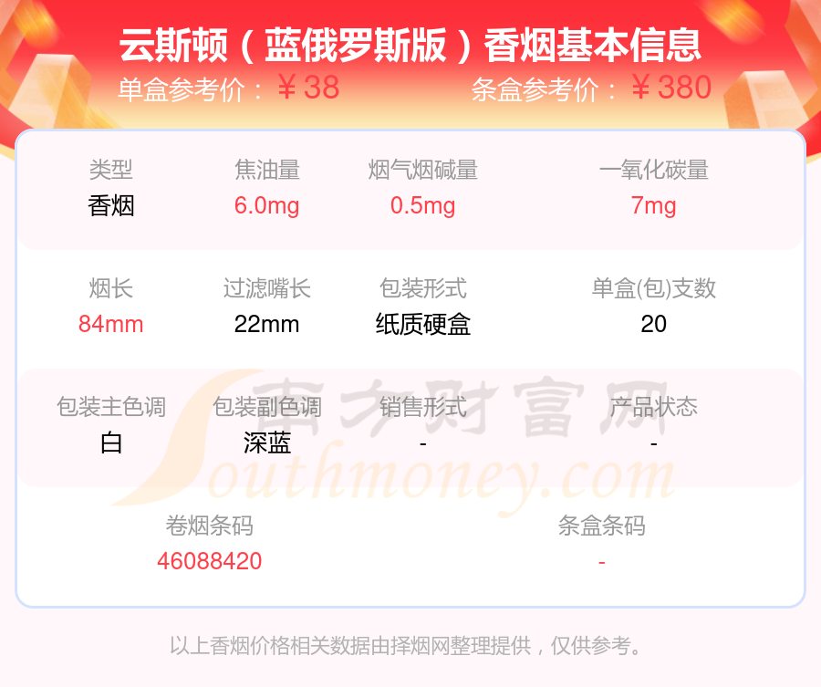 以上香烟数据整理于网络,请自行核实相关内容,因此所引起的后果与本站无关。