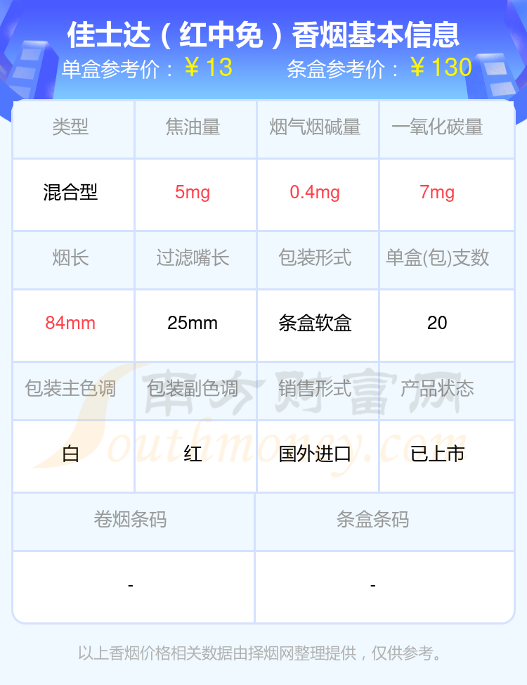 以上香烟价格相关数据由择烟网整理提供,仅供参考。