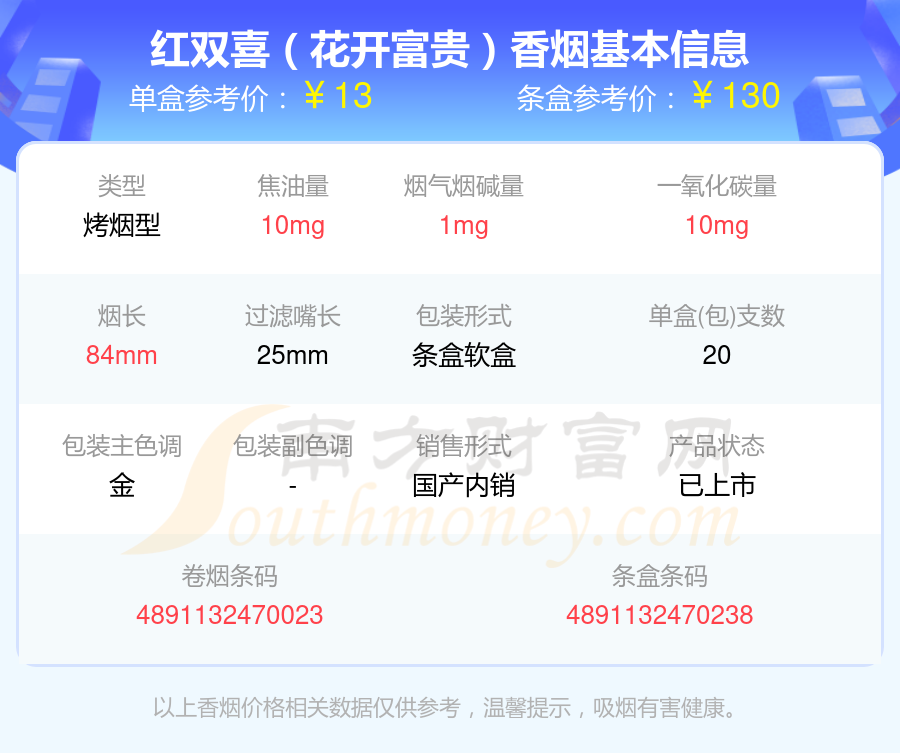 以上香烟价格相关数据仅供参考,温馨提示,吸烟有害健康。