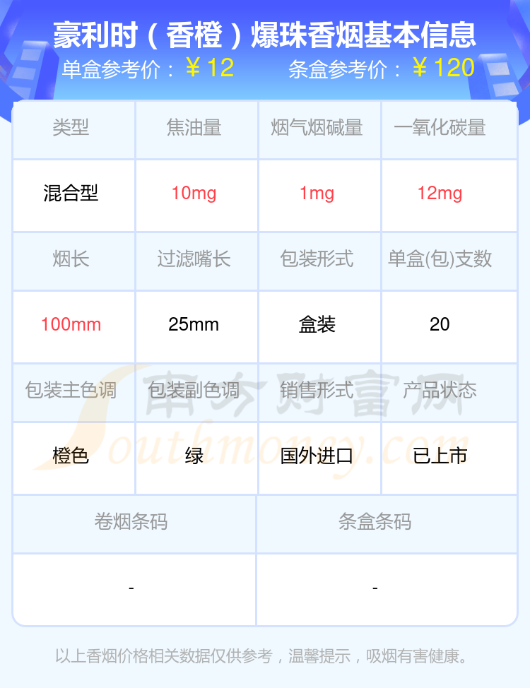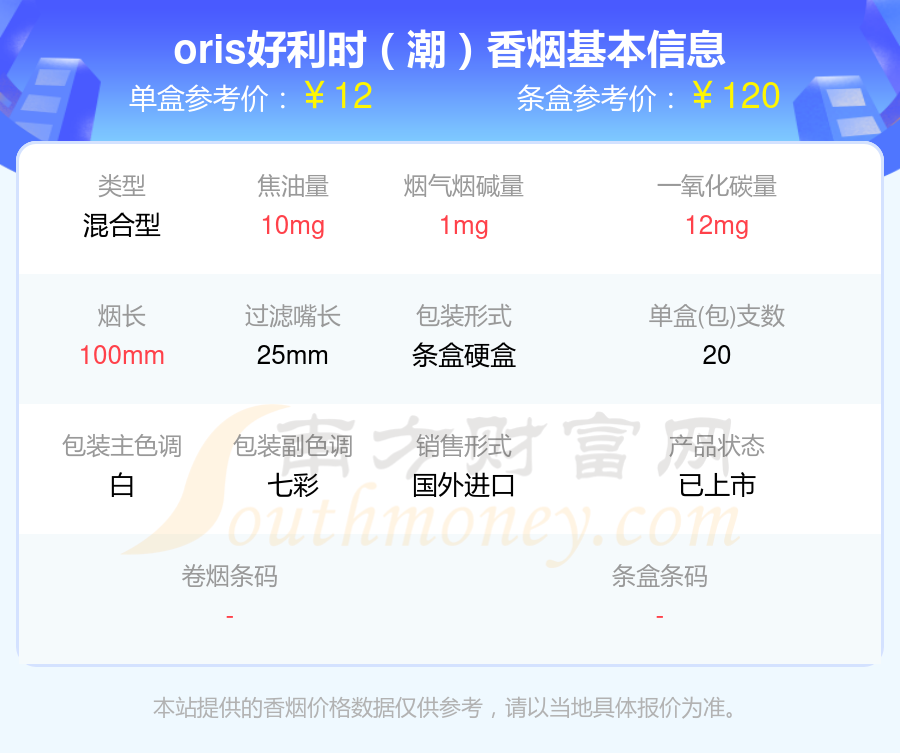 ORIS(豪利时)香烟焦油量10mg以下的烟有豪利时薄荷爆珠、oris好利时(潮)、豪利时(香橙)爆珠等,详细价格如下: