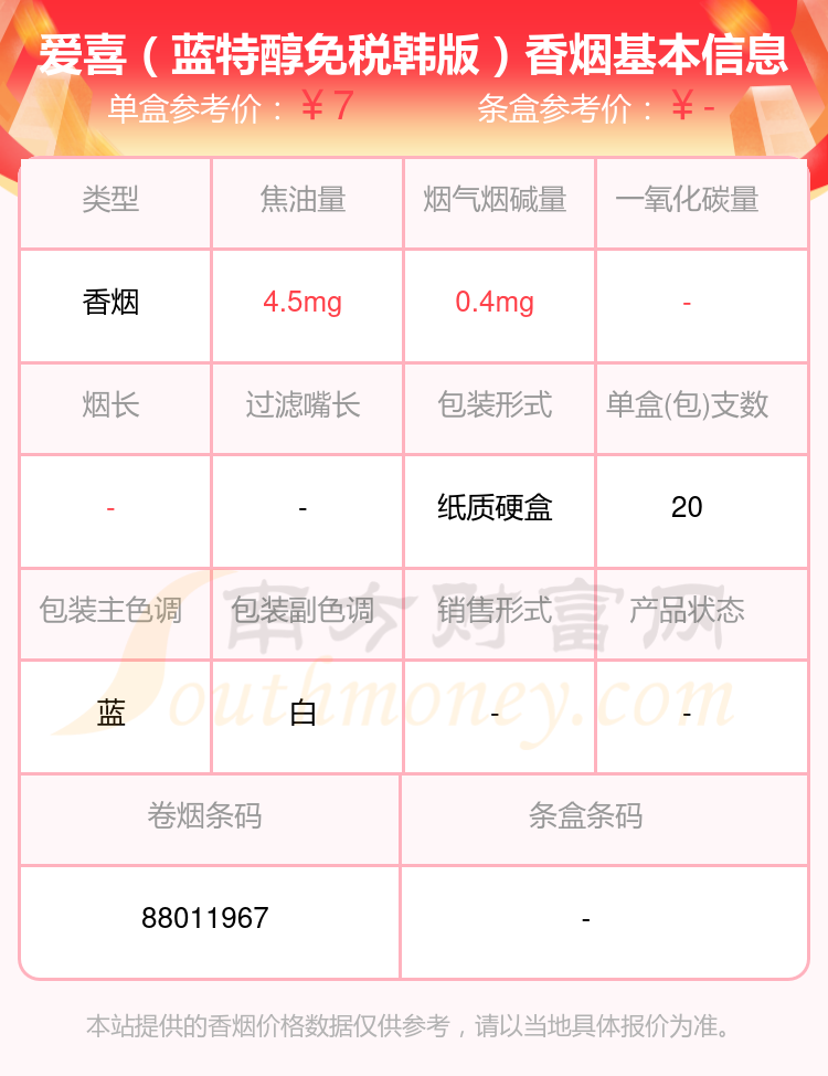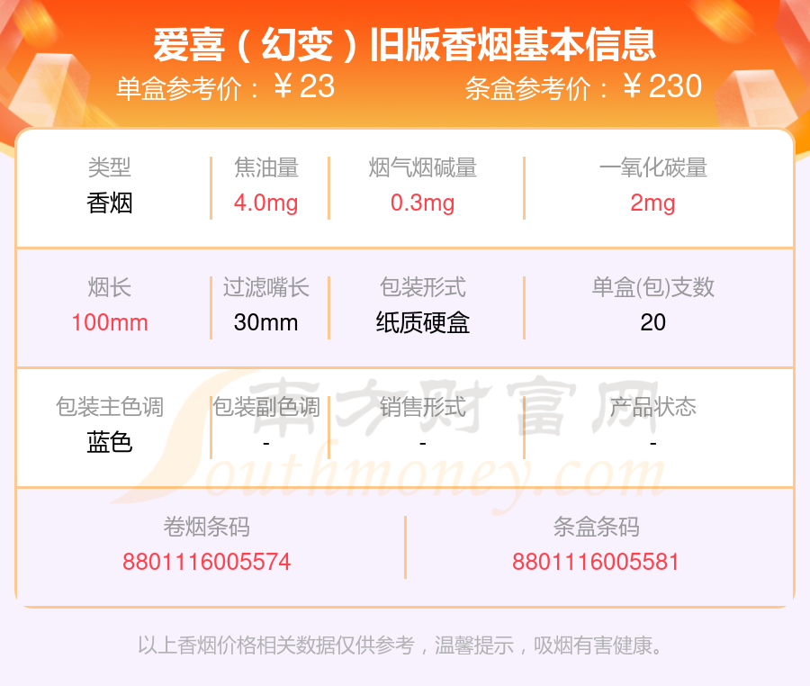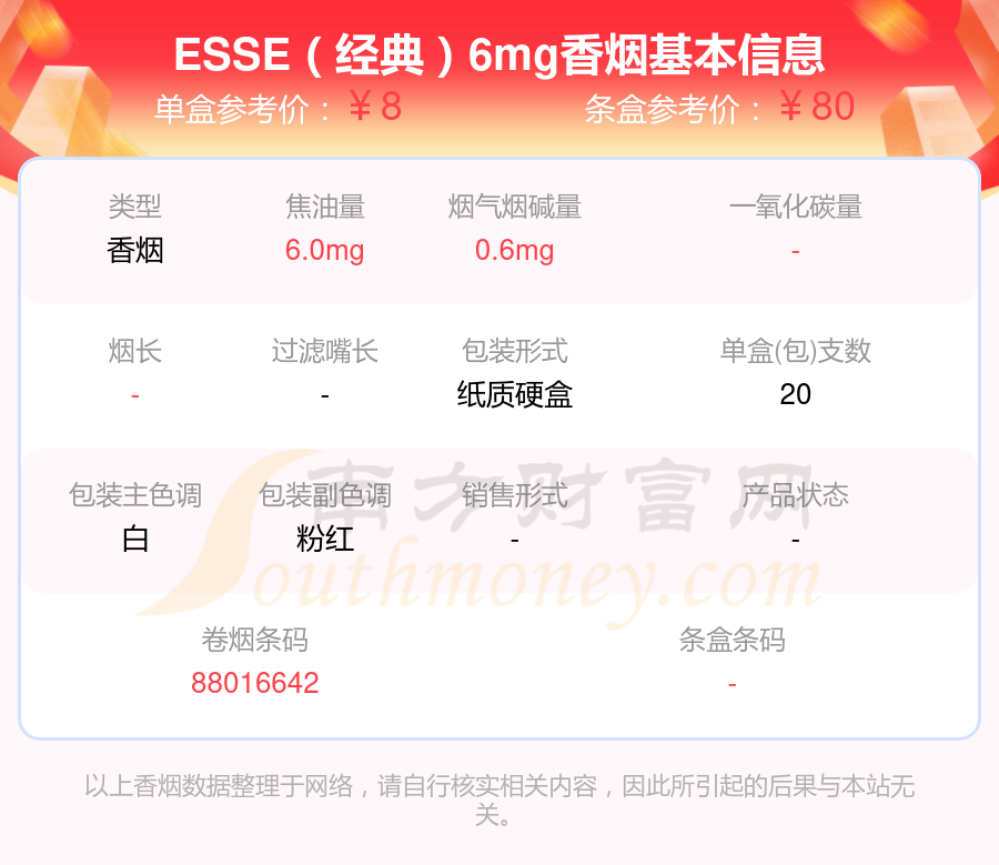 以上香烟数据整理于网络,请自行核实相关内容,因此所引起的后果与本站无关。