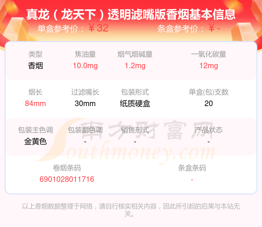 7、真龙(龙天下)透明滤嘴版