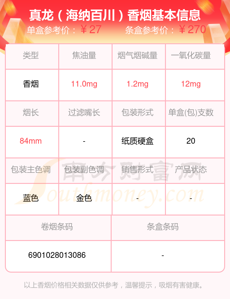 以上香烟价格相关数据仅供参考,温馨提示,吸烟有害健康。