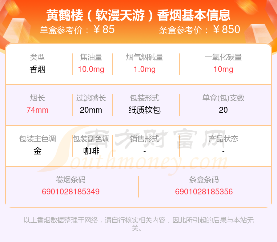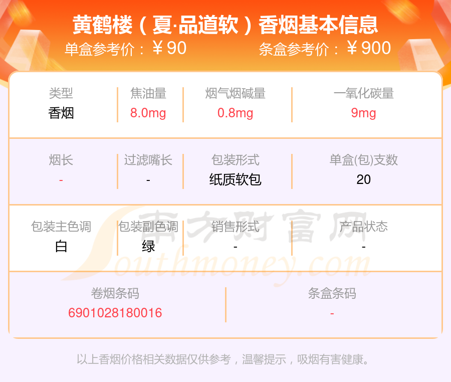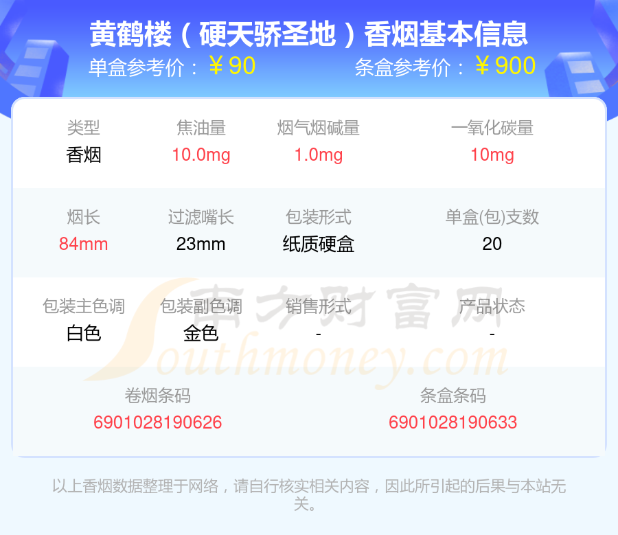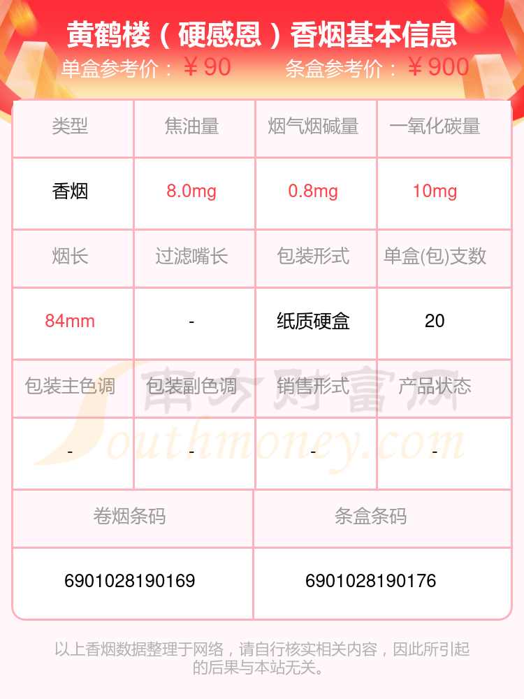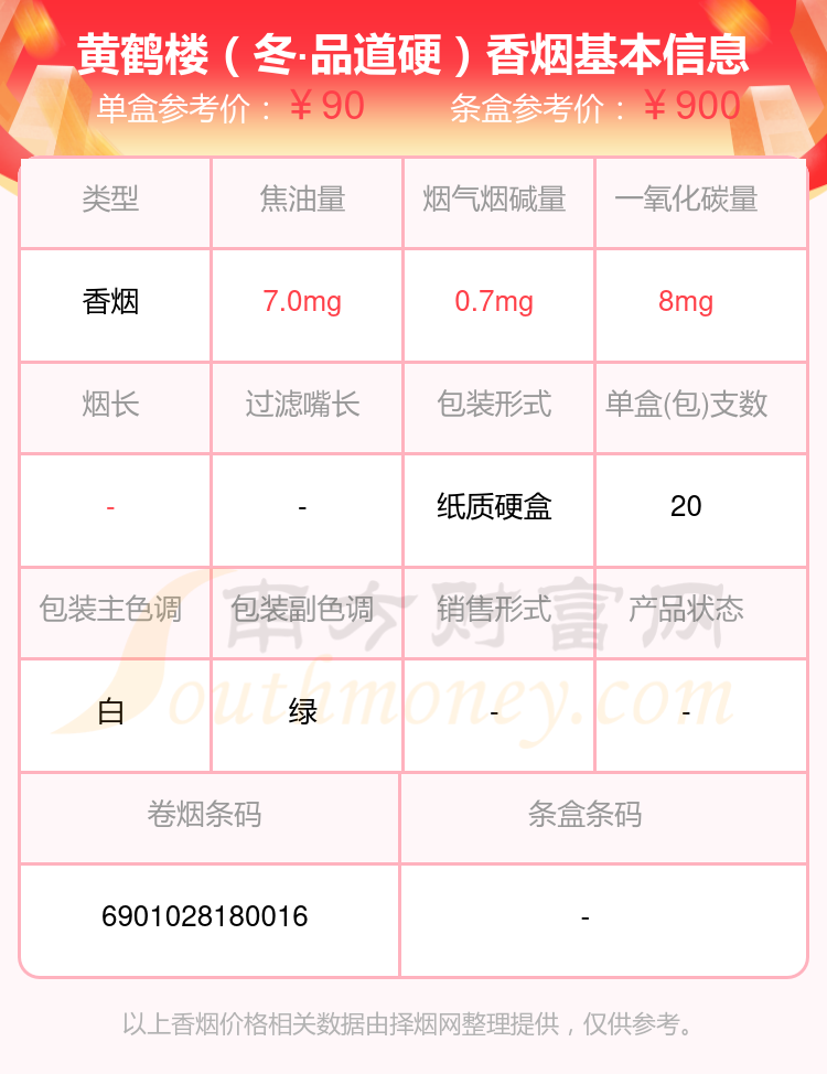 择烟网为大家盘点了黄鹤楼香烟70-90元左右的,分别有黄鹤楼(夏·品道软)、黄鹤楼(冬·品道硬)、黄鹤楼(硬天骄圣地)、黄鹤楼(正道)、黄鹤楼(硬感恩)旧版、黄鹤楼(硬感恩)、黄鹤楼(硬长漫天游)、黄鹤楼(软漫天游)、黄鹤楼(喜相逢·福)、黄鹤楼(喜相逢·金玫瑰)等,具体价格如下: