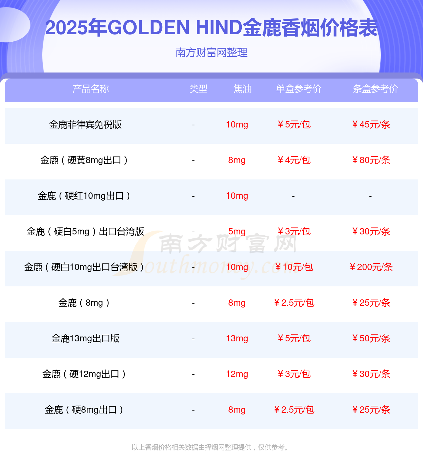 本站提供的香烟价格数据仅供参考,请以当地具体报价为准。