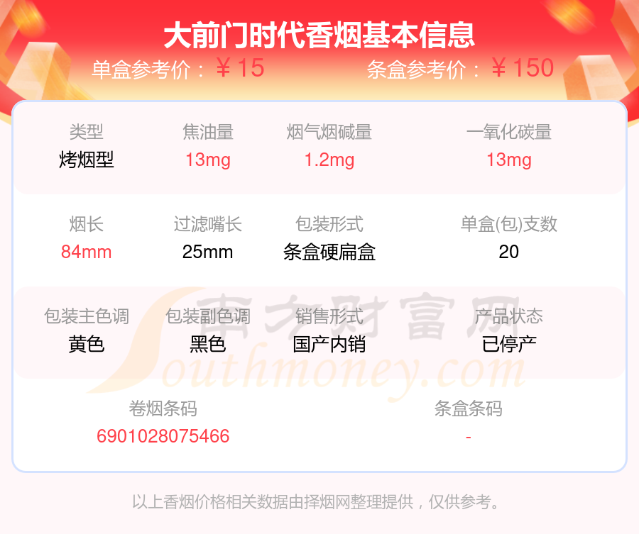 大前门时代单盒参考价:15元