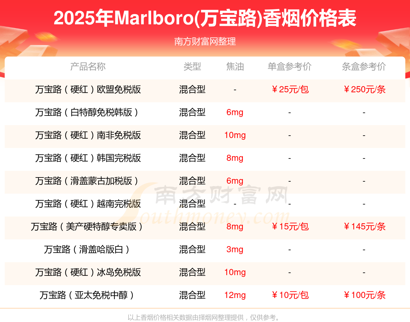 以上香烟价格相关数据由择烟网整理提供,仅供参考。
