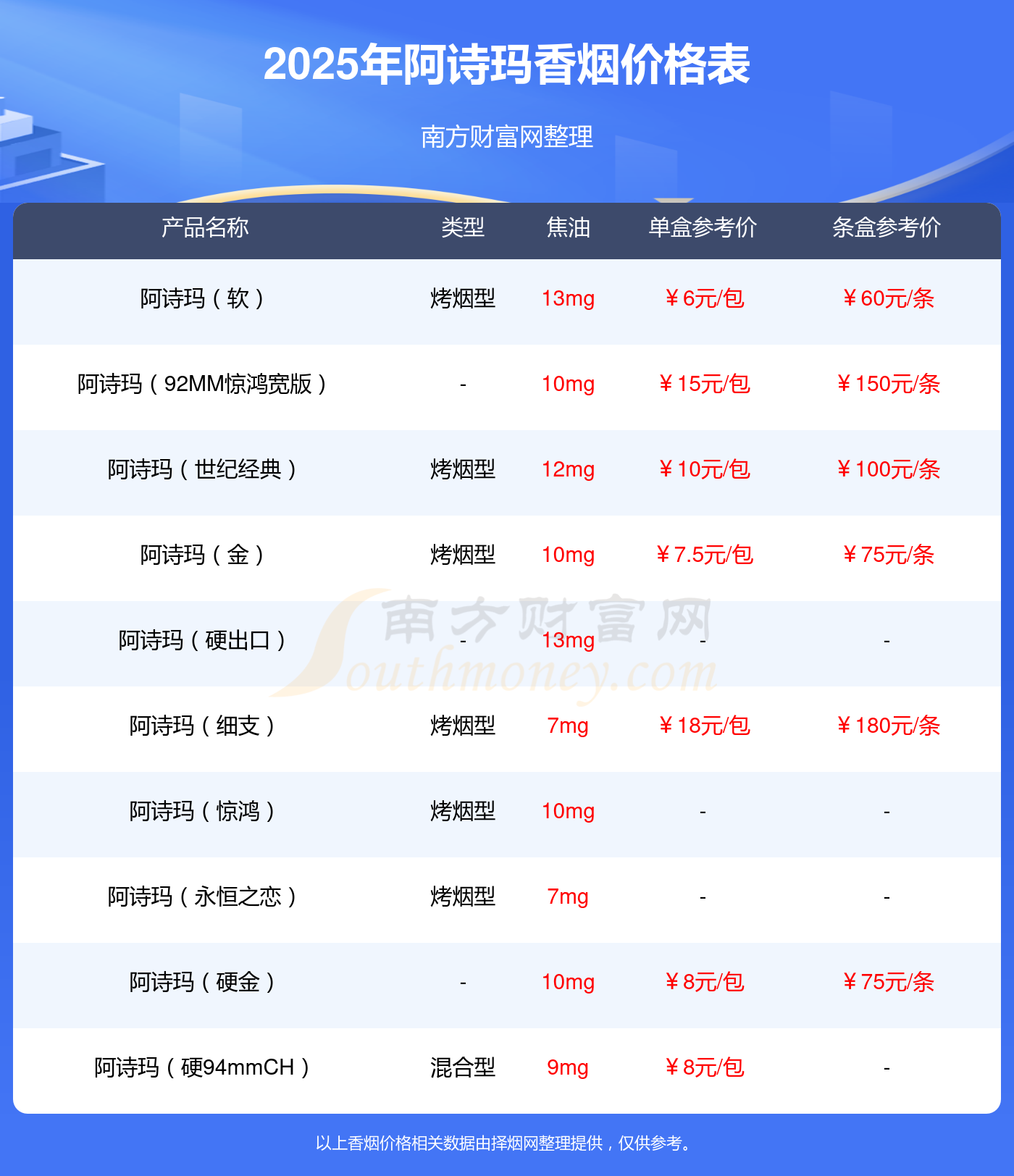 本站提供的香烟价格数据仅供参考,请以当地具体报价为准。