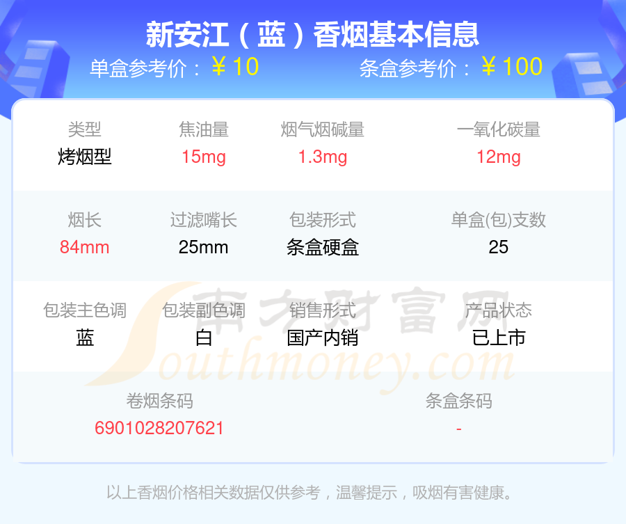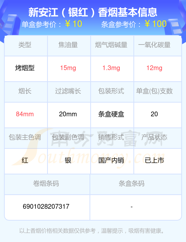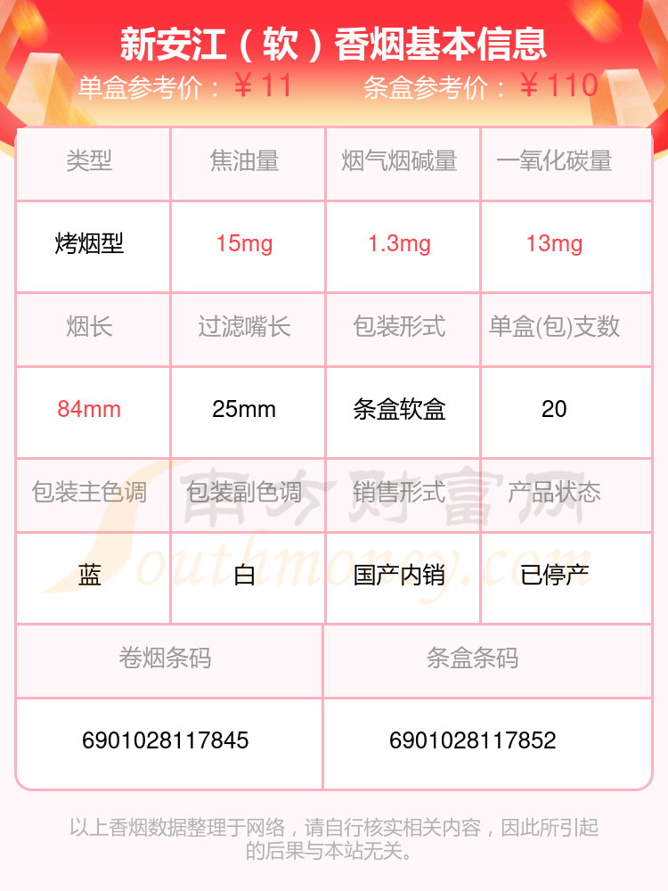 新安江(软)参考价11元/包、新安江(蓝)参考价10元/包、新安江(银红)参考价10元/包等。