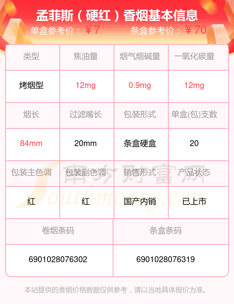 孟菲斯(硬蓝)参考价7元/包、孟菲斯(硬红)参考价7元/包等。