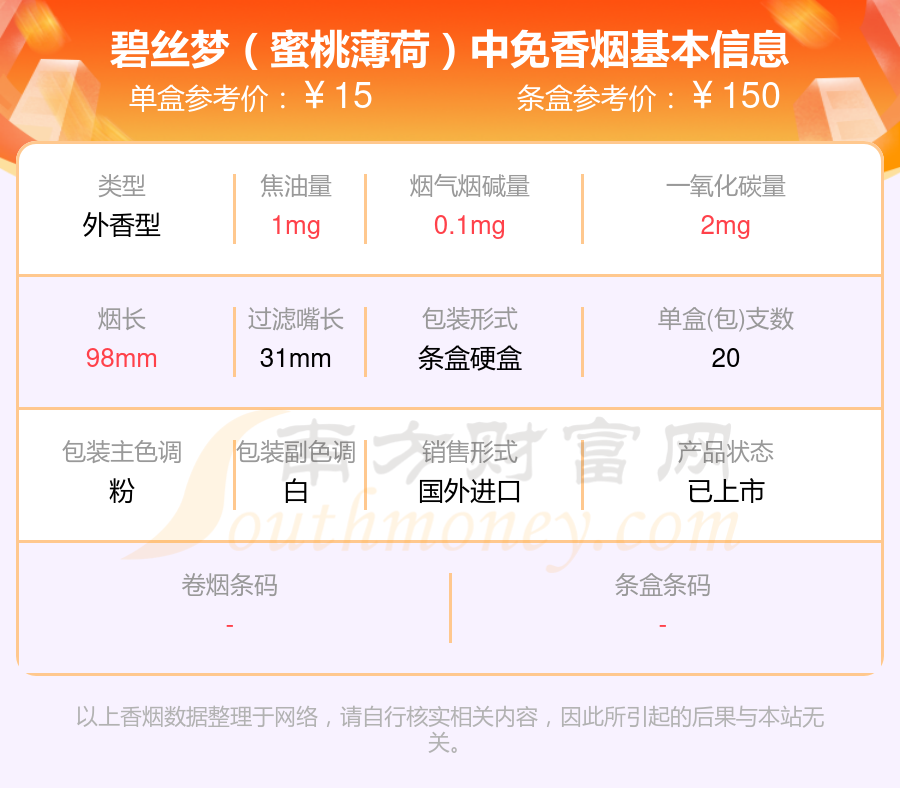 以上香烟价格相关数据仅供参考,温馨提示,吸烟有害健康。