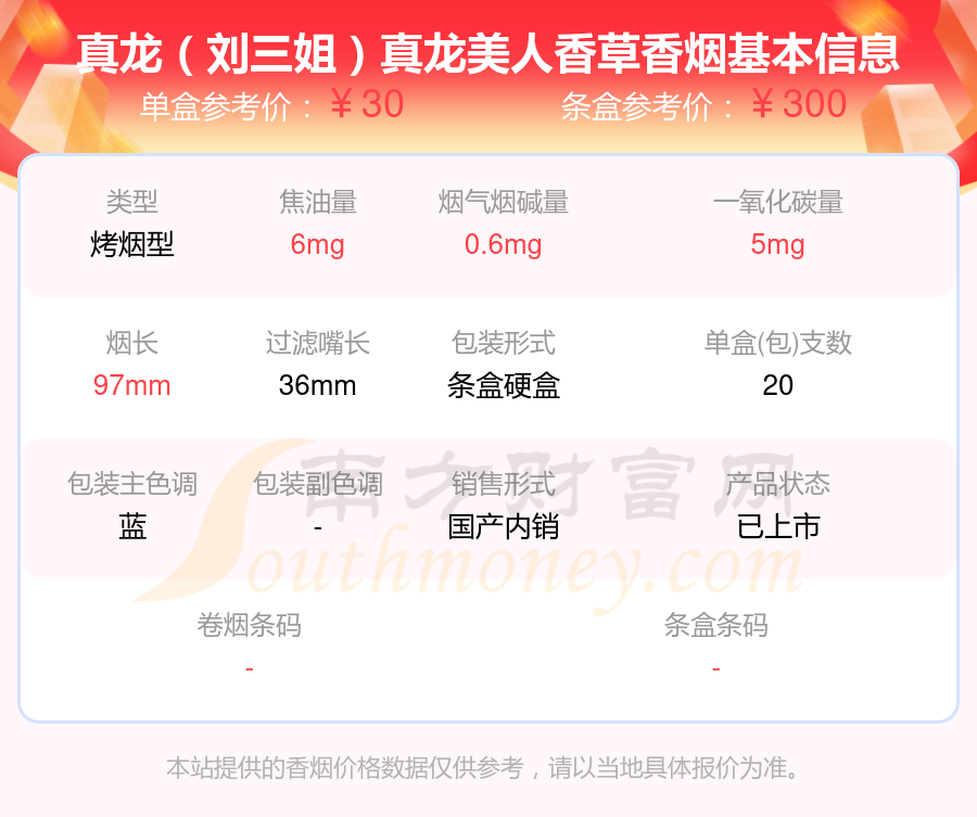 本站提供的香烟价格数据仅供参考,请以当地具体报价为准。