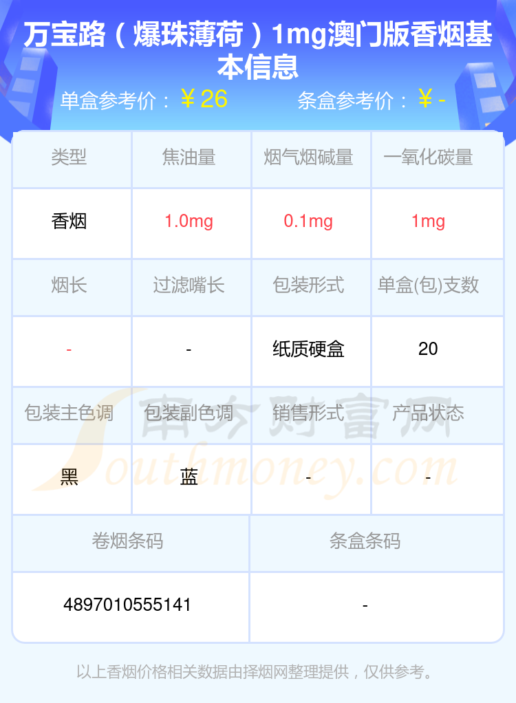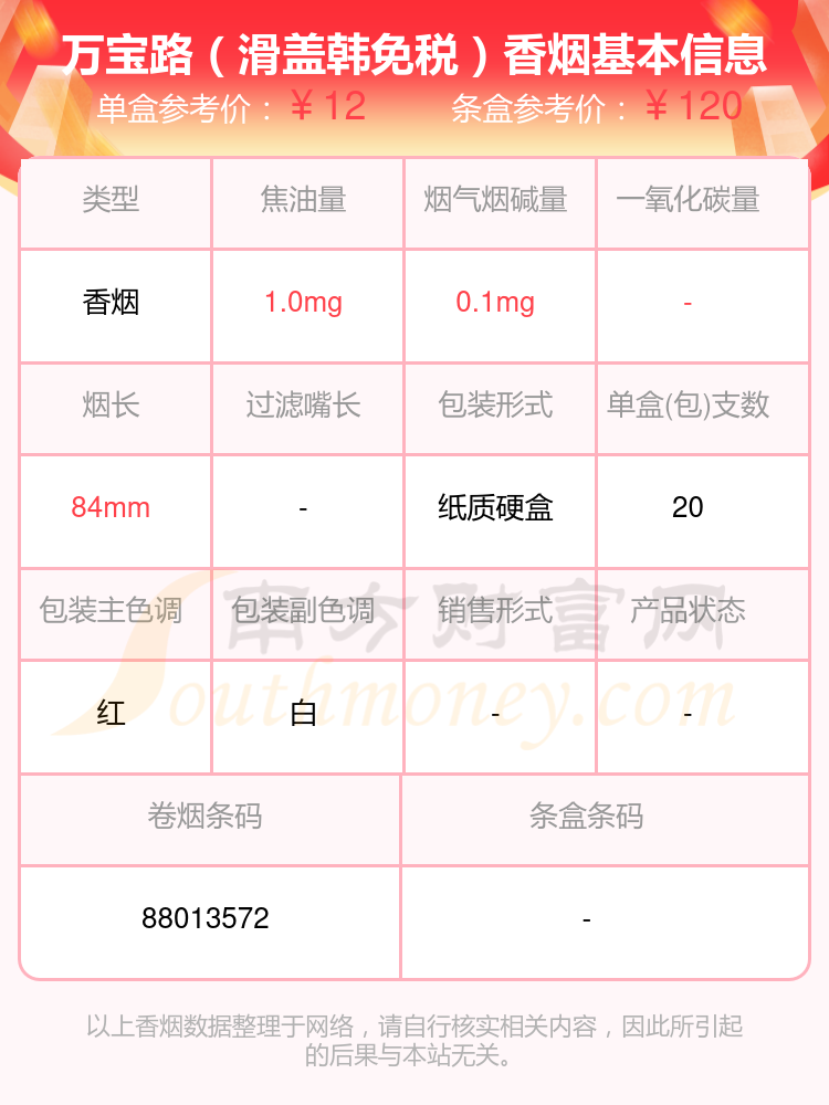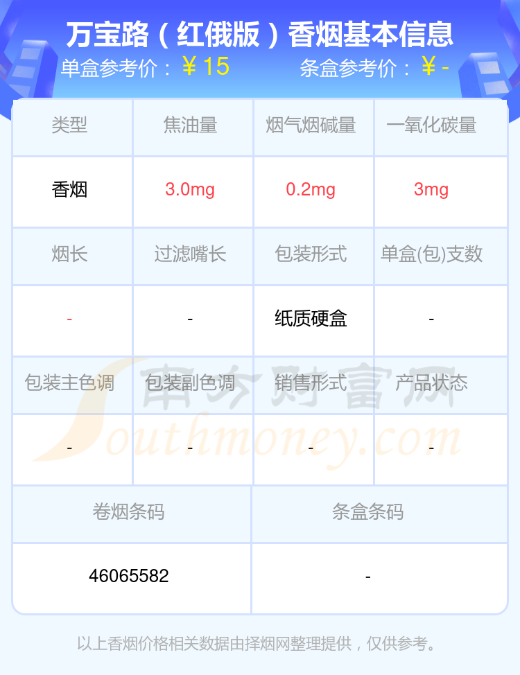以上香烟数据整理于网络,请自行核实相关内容,因此所引起的后果与本站无关。