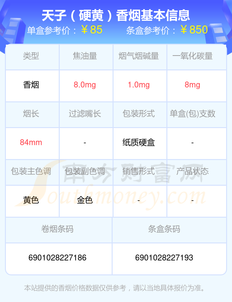 60元至90元左右的天子香烟有哪些?择烟网为大家整理盘点,有天子(硬黄)、天子(软传奇)、天子(壹号)等,详细价格如下: