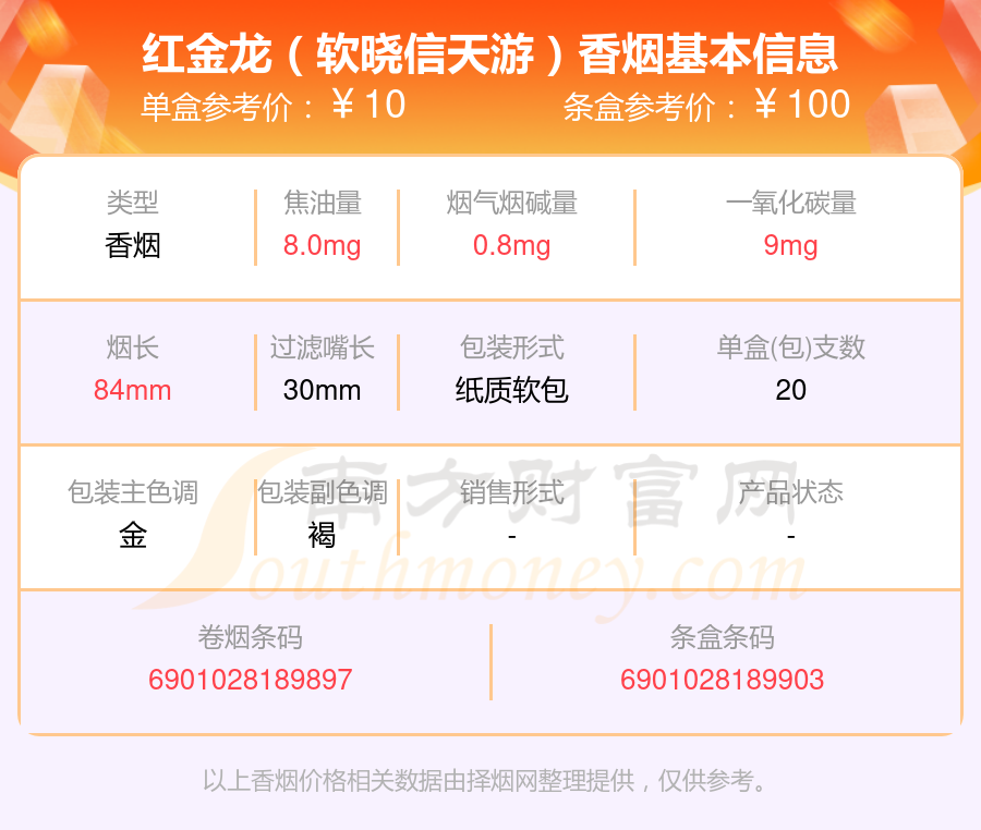 红金龙(软晓信天游)单盒参考价:10元