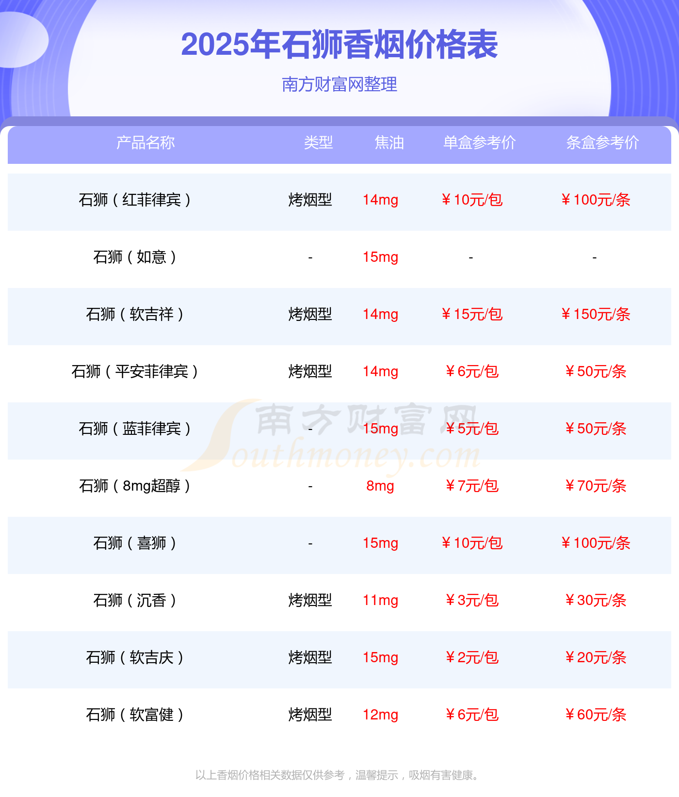以上香烟价格相关数据由择烟网整理提供,仅供参考。