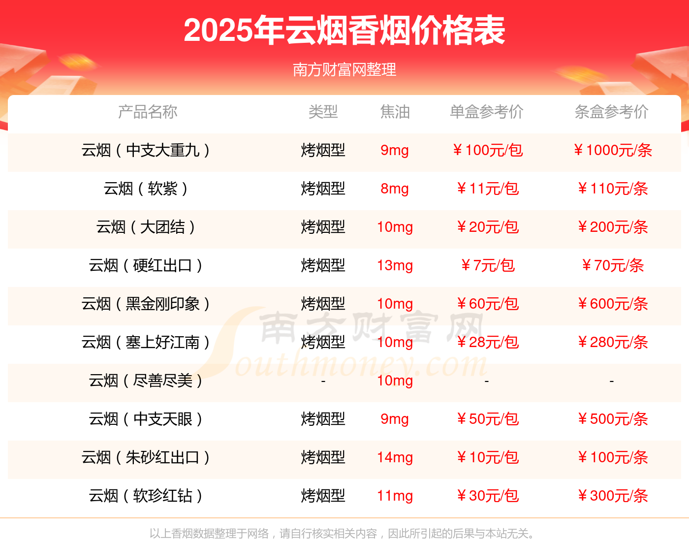 以上香烟价格相关数据仅供参考,温馨提示,吸烟有害健康。