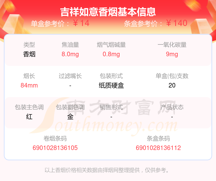 以上香烟价格相关数据由择烟网整理提供,仅供参考。