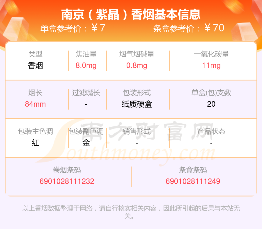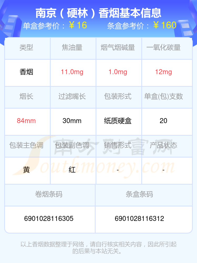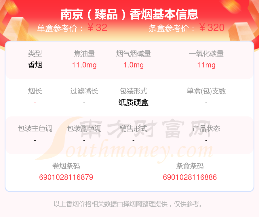 南京香烟烟碱量1mg以下的烟有南京(臻品)、南京(硬金星)、南京(新版)、南京(喜庆)、南京(红华西)、南京(软九五)、南京(硬林)、南京(壹品)、南京(金砂)、南京(紫晶)等,具体价格如下: