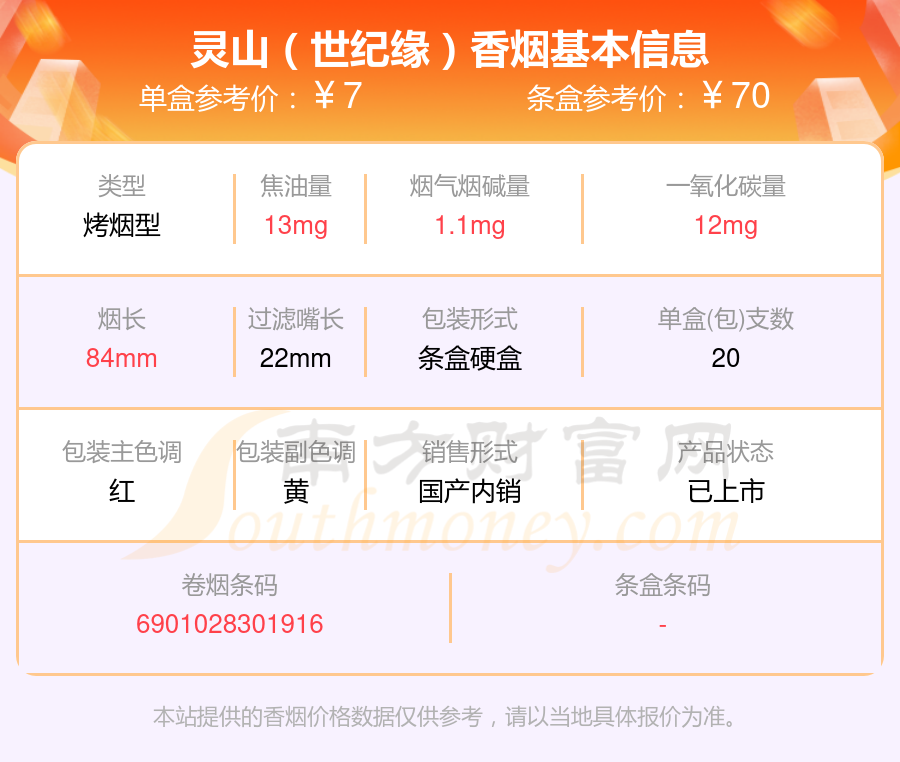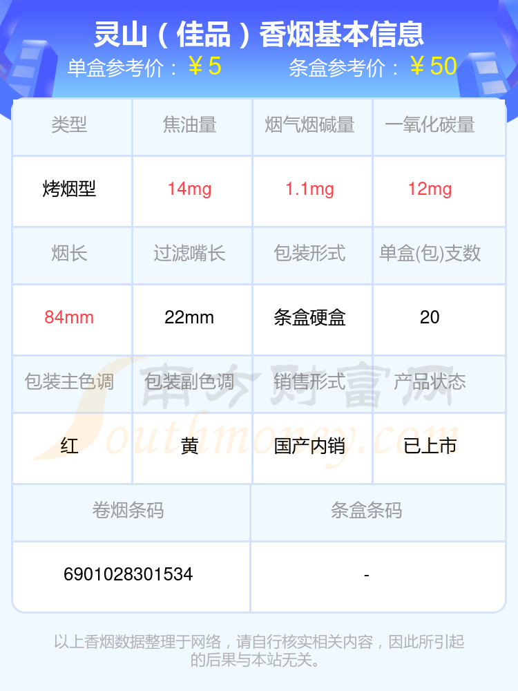 灵山香烟焦油量8至15mg的烟有灵山(佳品)、灵山(紫)、灵山(世纪缘)、灵山(吉祥如意)等,具体价格如下: