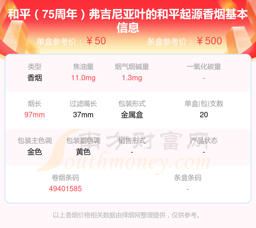 以上香烟价格相关数据由择烟网整理提供,仅供参考。