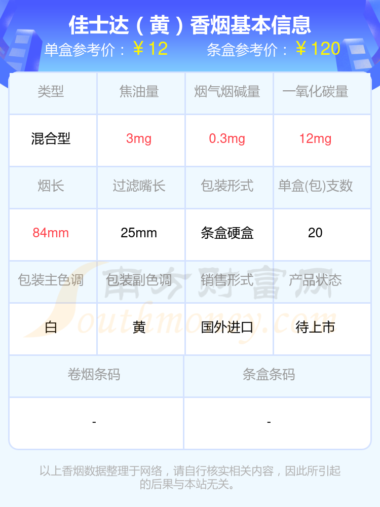以上香烟数据整理于网络,请自行核实相关内容,因此所引起的后果与本站无关。