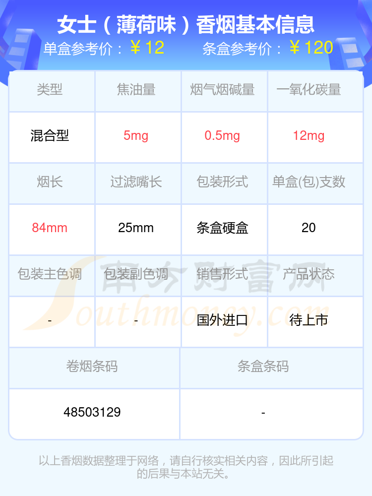 以上香烟数据整理于网络,请自行核实相关内容,因此所引起的后果与本站无关。
