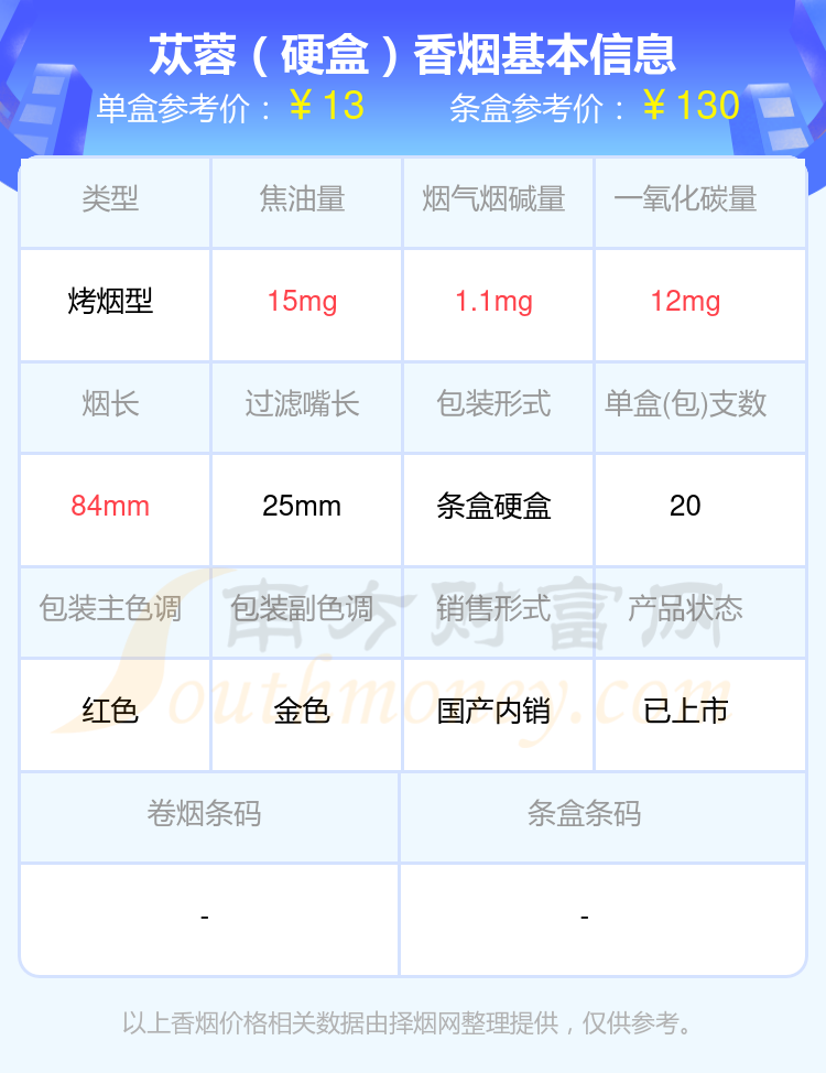 以上香烟价格相关数据仅供参考,温馨提示,吸烟有害健康。