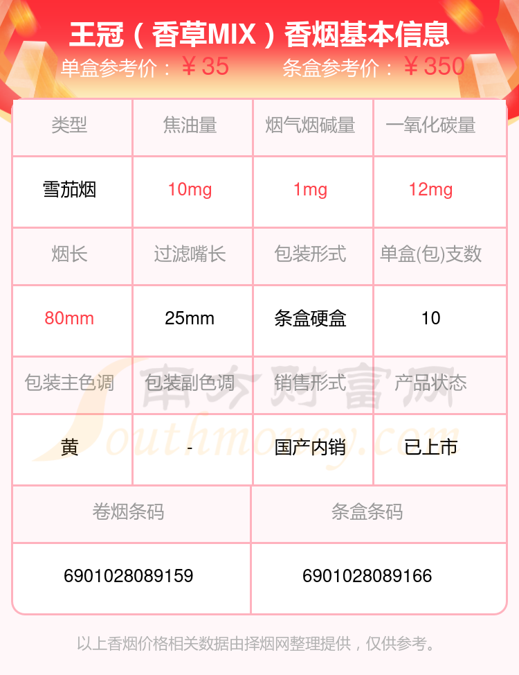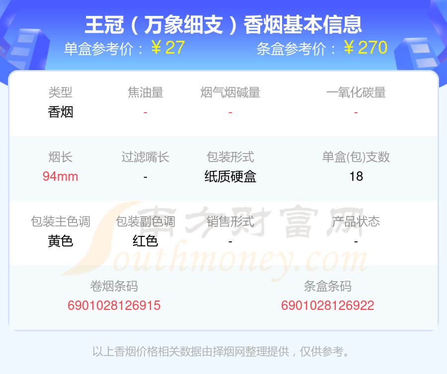 以上香烟价格相关数据由择烟网整理提供,仅供参考。
