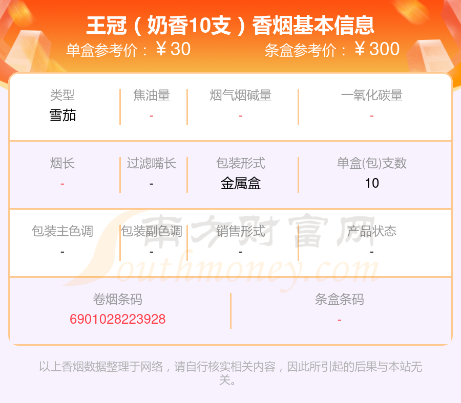以上香烟数据整理于网络,请自行核实相关内容,因此所引起的后果与本站无关。