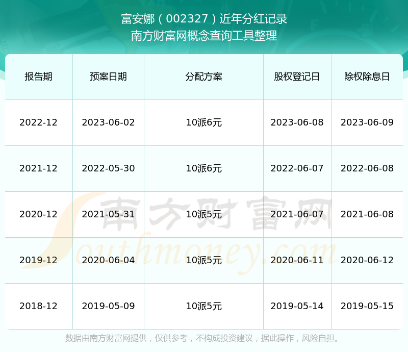 一、富安娜(002327)股票分红记录