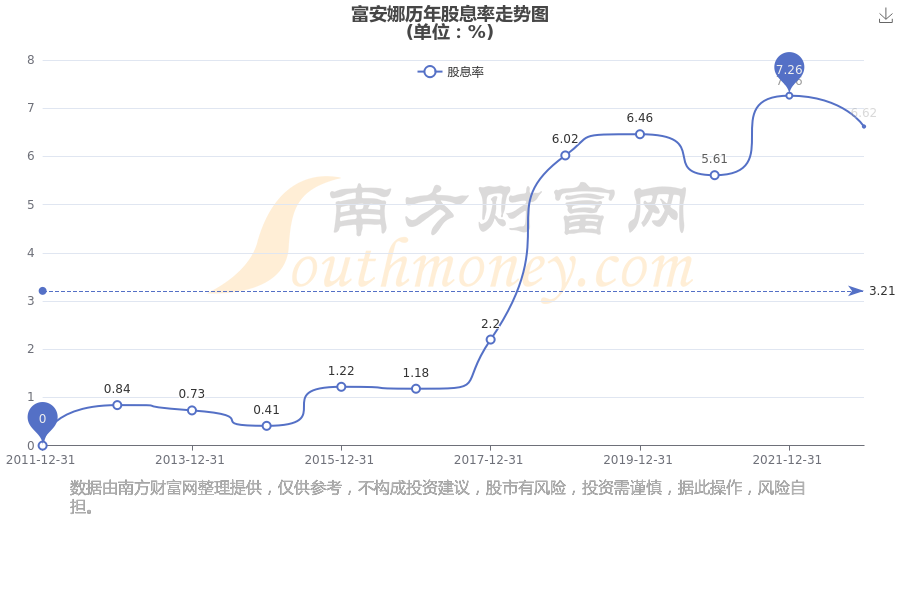 近年富安娜年度股息率走势如下图: